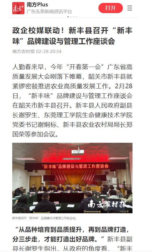 南方农村报与会代表建议从商标注册、日常运营、智库运营、产品运营、活动运营、宣传运营及市场运营等角度全方面推进“新丰味”品牌建设高质量发展。